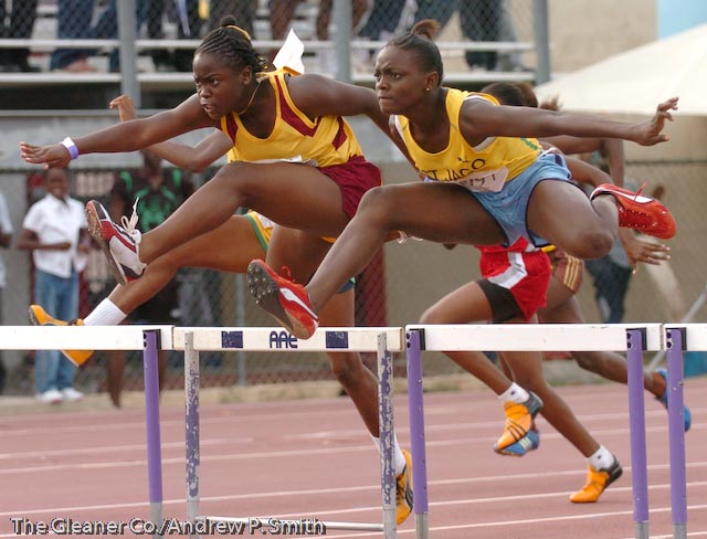 Female high school hurdlers in action in Kingston on April 2 2006. Jamaica’s international success in athletics is due mainly to its high school sports programme.